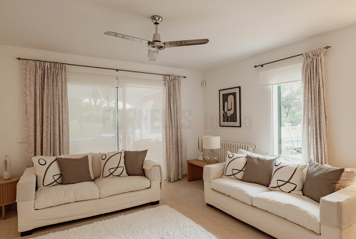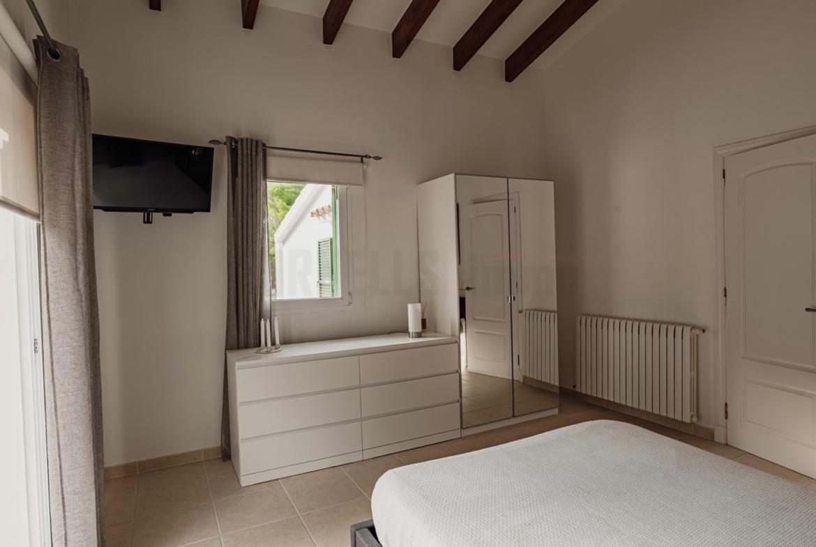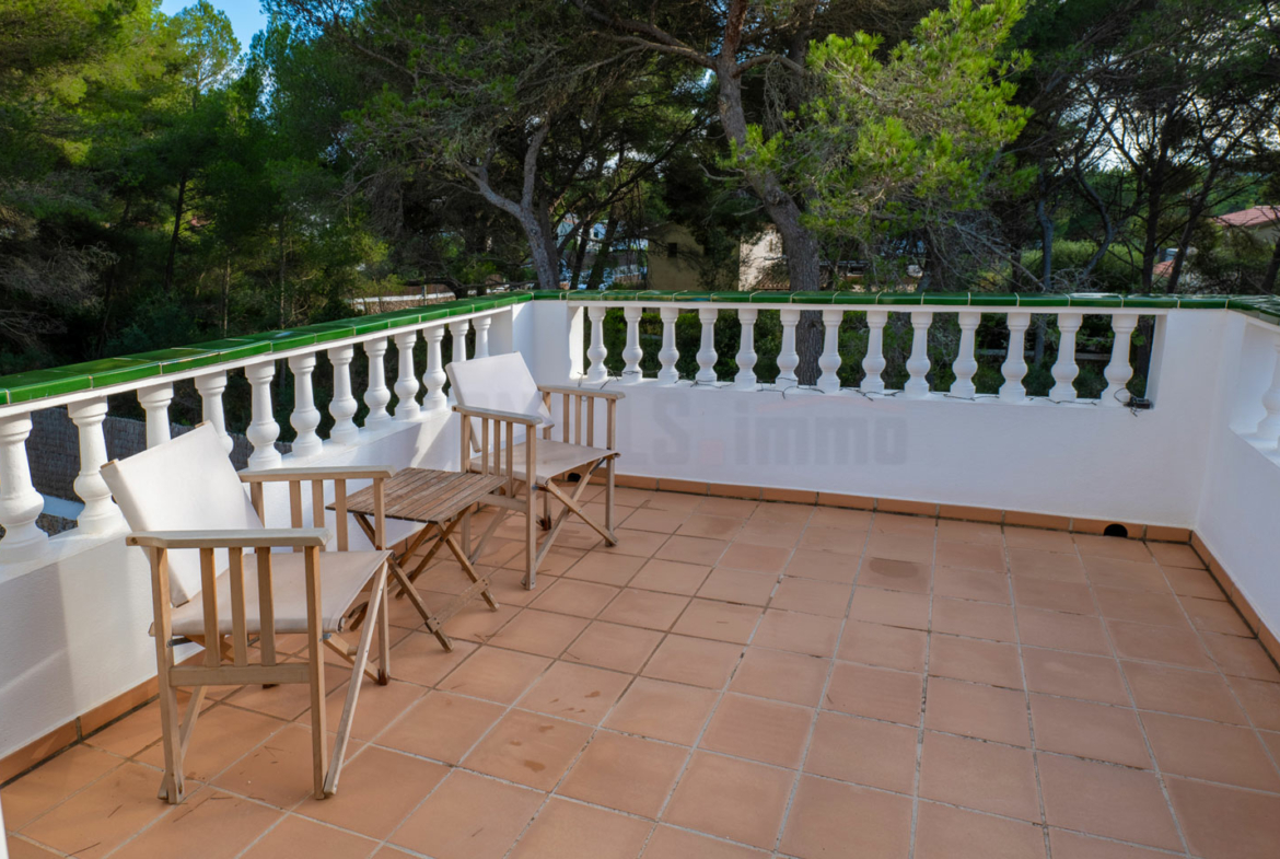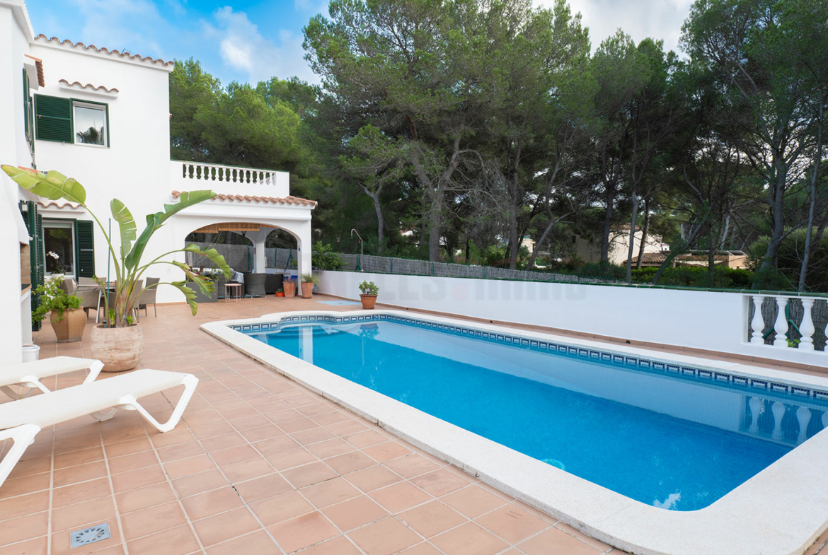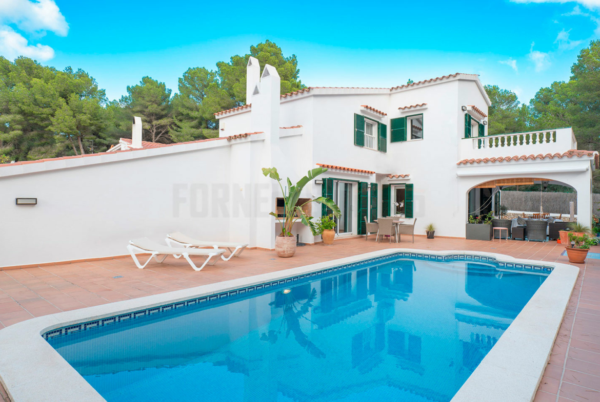 FANTÁSTICA CASA CON LICENCIA TURÍSTICA . Cerca de la playa y el único campo de golf de la isla. Relación calidad precio de las mejores de Menorca. Ubicada en zona tranquila con amplias calles y todos los servicios. rodeada en dos de sus lados de zona verde. Muy buena calidad de construcción y poco mantenimiento. De unos 230 m construidos en dos plantas en una parcela de 810 m. En perfecto estado de conservación. Aire acondicionado en las habitaciones, calefacción, ventanas de aluminio con doble cristal, armarios empotrados, chimenea. Dispone de garaje, 4 habitaciones, 2 lavabos, porche, lavadero, almacen, piscina, terrazas, barbacoa y jardín. No dudes en llamar e informate sin copromiso.